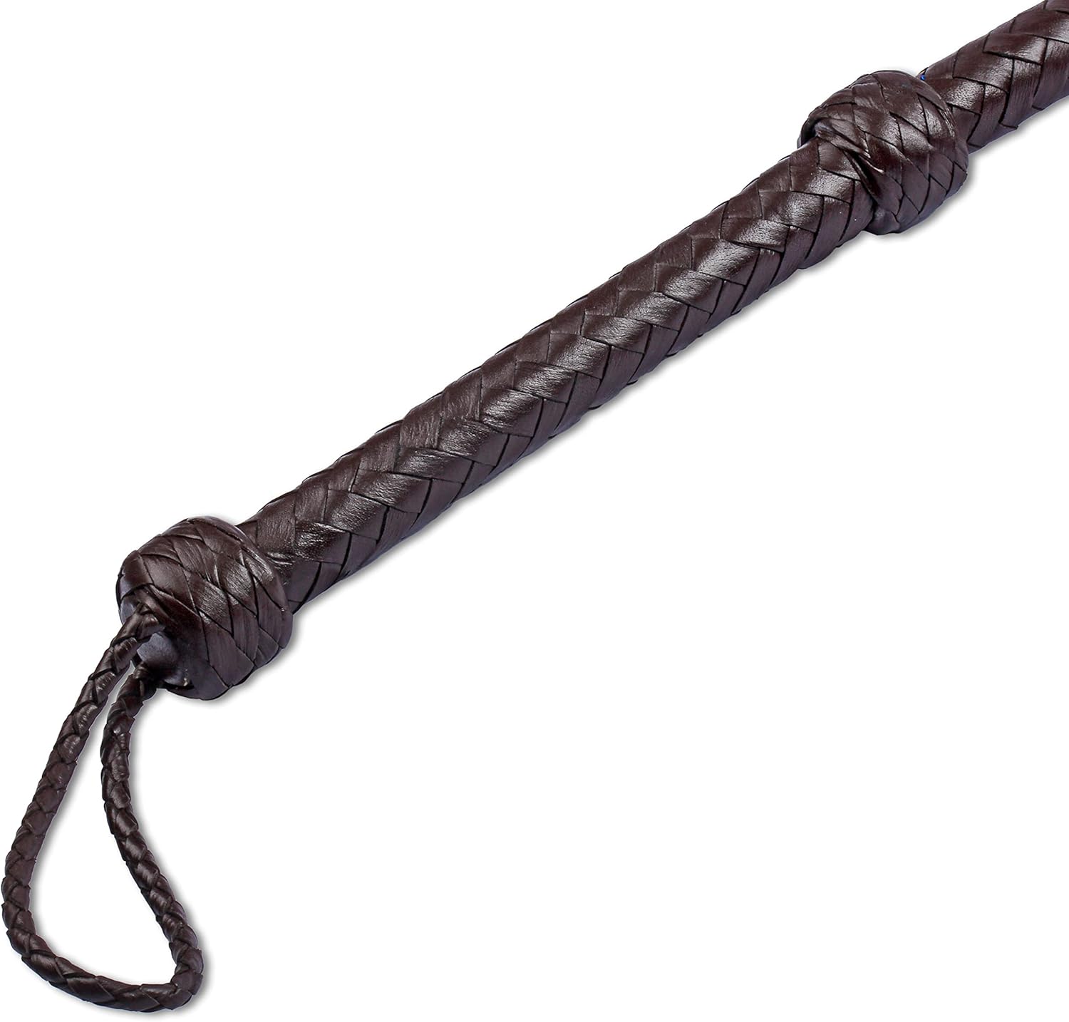 Crafted from high-quality genuine cowhide leather, this bullwhip is entirely handmade, inspired by Indiana Jones' style. Ideal for training horses, bulls, and other pets, it is perfect for various activities, including pet shows, races, and quality time with your pet. A typical bullwhip consists of a handle section, thong, fall, and cracker, and may also feature a wrist loop for hanging the whip.